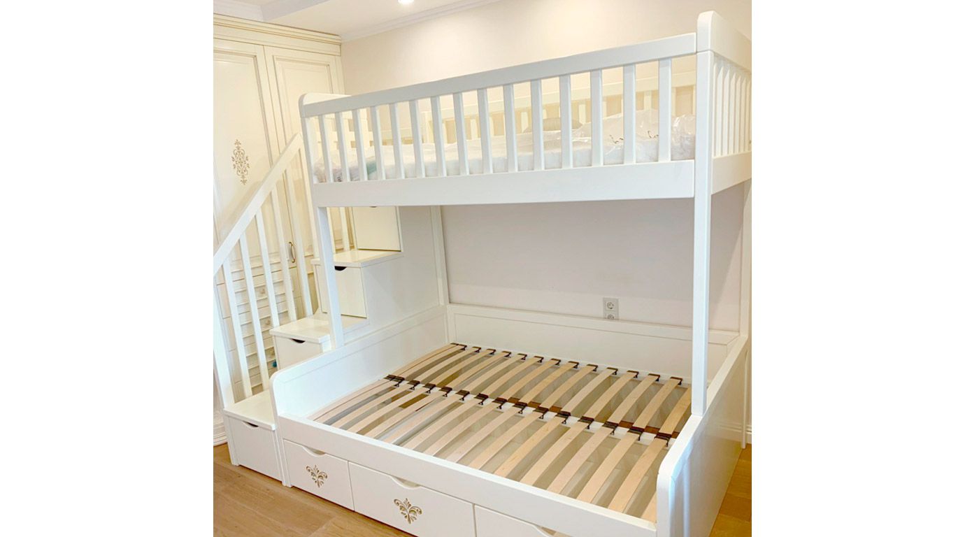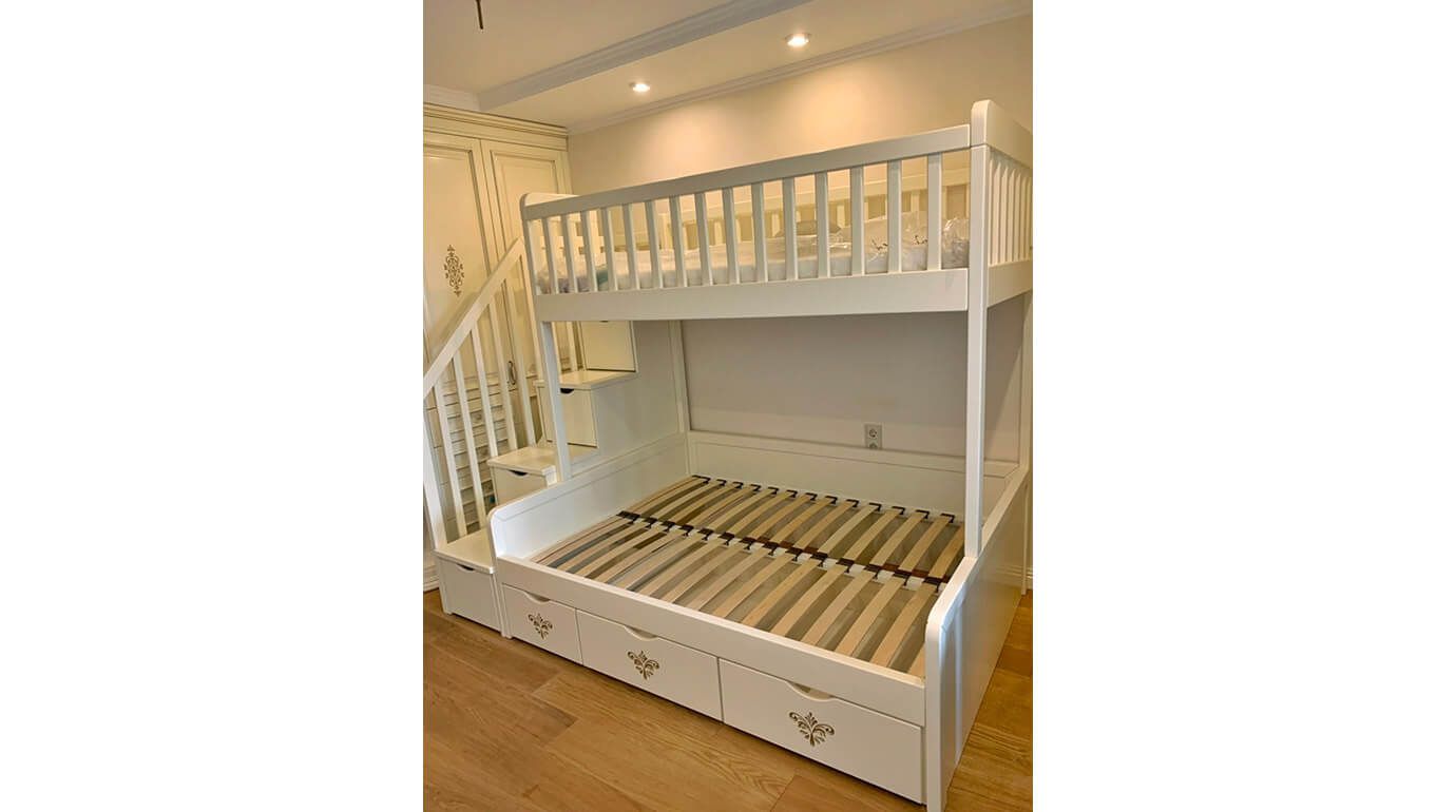 - Вариативность. Наш опыт и техническое оснащение позволяют воплощать индивидуальные проекты любой сложности: от лаконично оформленных кроватей до украшенных изысканным декором двухъярусных моделей, сопряженных с тумбами и эргономичных встроенных шкафов.