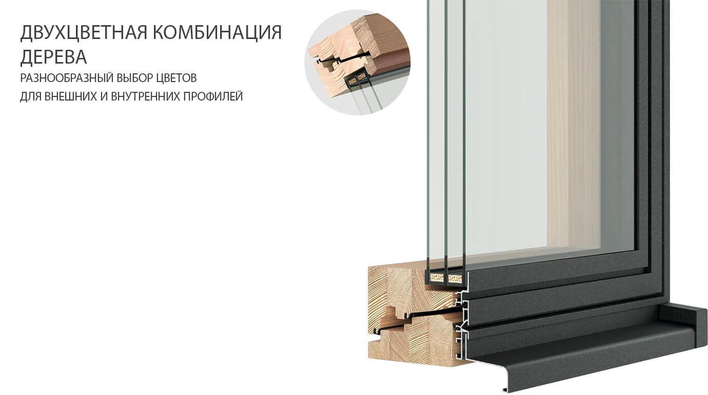 - Разнообразие. Мы объединили дерево и алюминий, а вы выберите цвет, который подойдет вашему дому больше всего. В нашем ассортименте одно- и двустворчатые варианты, с импостом и без него.