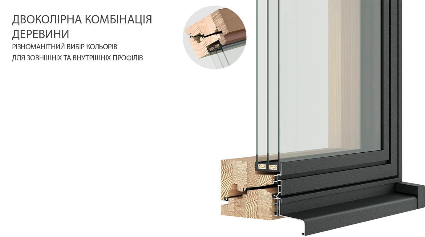 - Різноманітність. Ми поєднали дерево та алюміній, а ви оберіть колір, що пасуватиме вашій оселі якнайкраще. У нашому асортименті одно- та двостулкові варіанти, з імпостом та без нього.